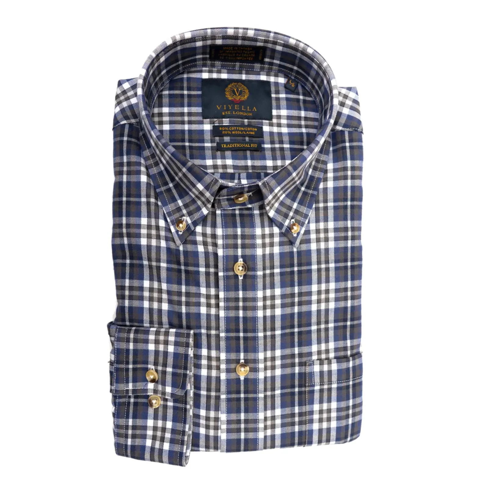 Viyella 80% Cotton 20% Merino Wool Traditional Fit Long Sleeve Made in Canada Button-Down Collar Sport Shirt